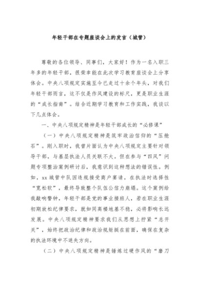/ 年轻干部在专题座谈会上的发言(城管)