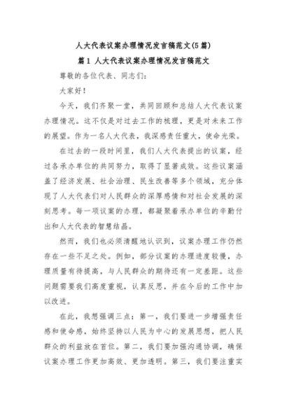 / (5篇)人大代表议案办理情况发言稿范文