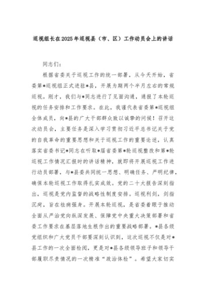 / 巡视组长在2025年巡视县(市、区)工作动员会上的讲话