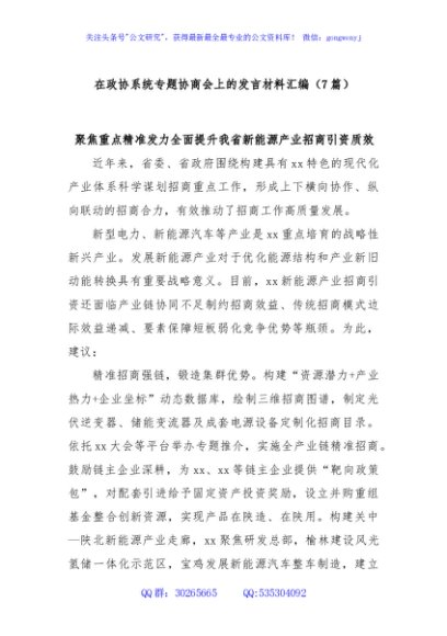 / (7篇)在政协系统专题协商会上的发言材料汇编