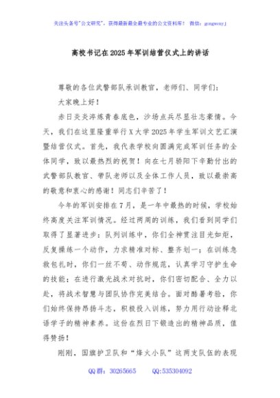 / 高校书记在2025年军训结营仪式上的讲话