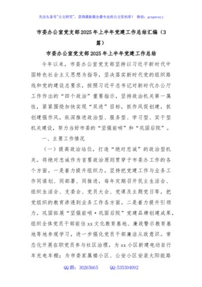 / (3篇)市委办公室党支部2025年上半年党建工作总结汇编