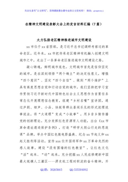 / (7篇)在精神文明建设表彰大会上的发言材料汇编
