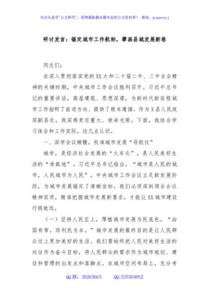 / 研讨发言:锚定城市工作航标,擘画县城发展新卷