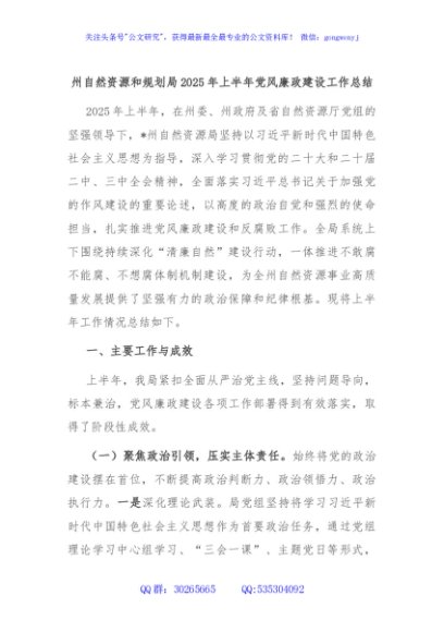/ 州自然资源和规划局2025年上半年党风廉政建设工作总结