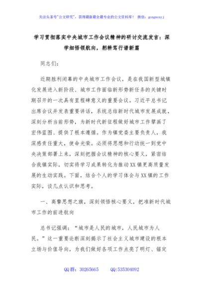 / 学习贯彻落实中央城市工作会议精神的研讨交流发言:深学细悟领航向,躬耕笃行谱新篇