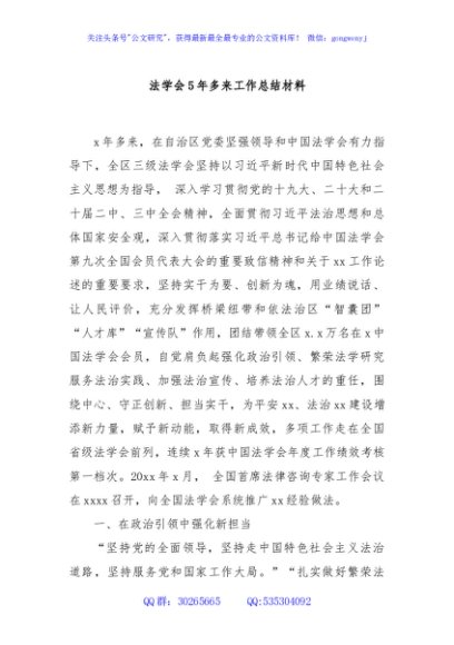 / 法学会5年多来工作总结材料