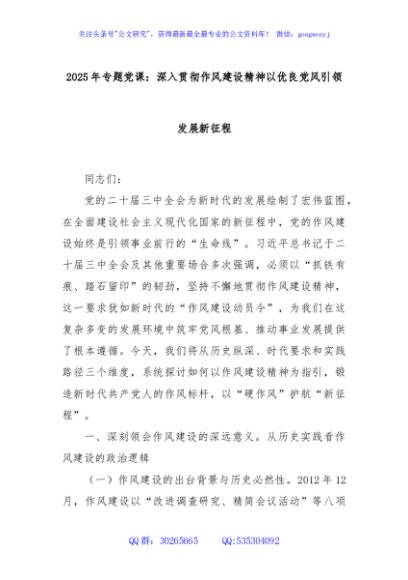 / 2025年专题党课:深入贯彻作风建设精神以优良党风引领发展新征程