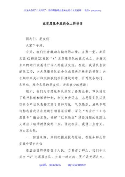 / 在志愿服务座谈会上的讲话