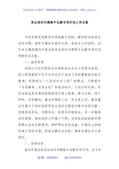 / 突出信访问题集中化解专项行动工作方案