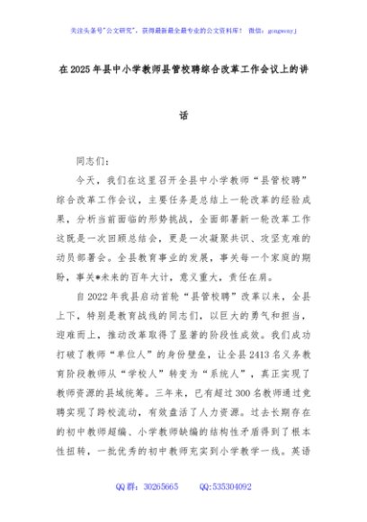 / 在2025年县中小学教师县管校聘综合改革工作会议上的讲话
