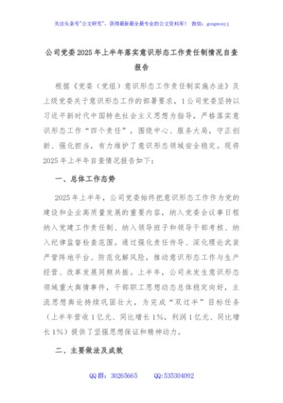 / 公司党委2025年上半年落实意识形态工作责任制情况自查报告