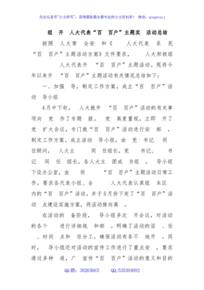 / 乡镇组织开展人大代表“百村百户”主题实践活动总结