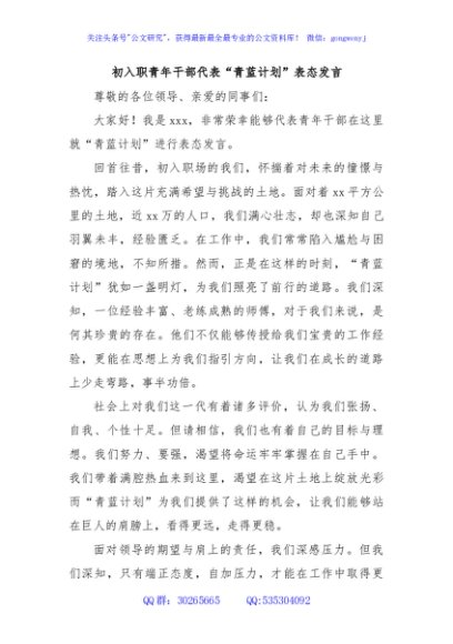 / 初入职青年干部代表“青蓝计划”表态发言