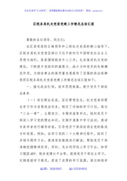 / 区税务局机关党委党建工作情况总结汇报