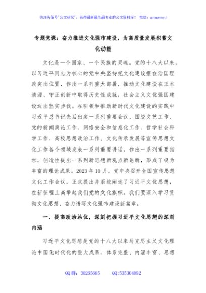 / 专题党课:奋力推进文化强市建设,为高质量发展积蓄文化动能