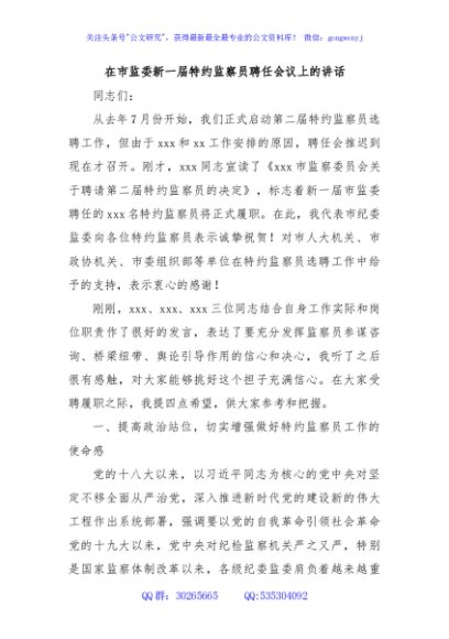 / 在市监委新一届特约监察员聘任会议上的讲话