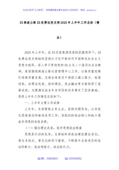 / XX高速公路XX收费站党支部2025年上半年工作总结(精品)