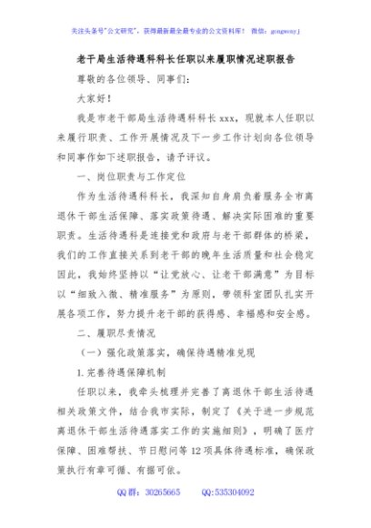/ 老干局生活待遇科科长任职以来履职情况述职报告