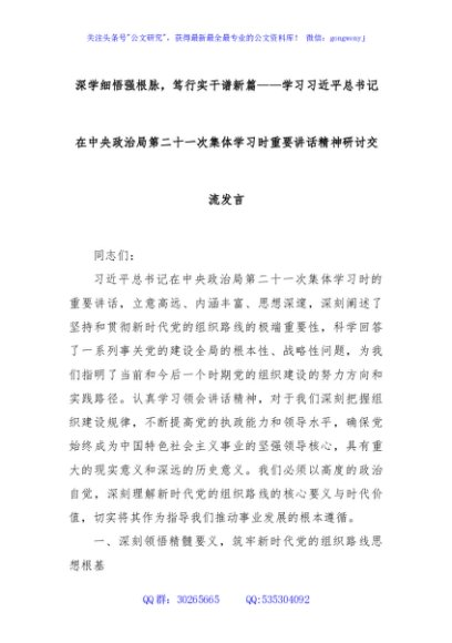 / 深学细悟强根脉,笃行实干谱新篇——学习总书记在中央政治局第二十一次集体学习时重要讲话精神研讨交流发言
