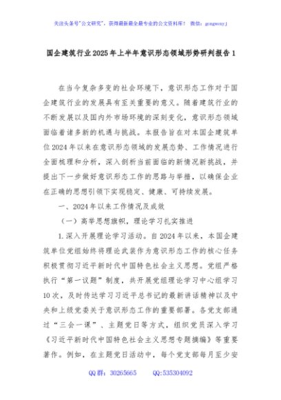 / 国企建筑行业2025年上半年意识形态领域形势研判报告1