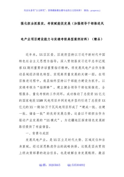 / 强化担当抓落实,考核赋能促发展(加强领导干部推进风电产业项目建设能力与实绩考核典型案例材料)(精品)