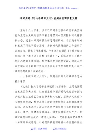 / 学好用好《总书记经济文选》扎实推动高质量发展