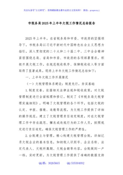 / 市税务局2025年上半年欠税工作情况总结报告