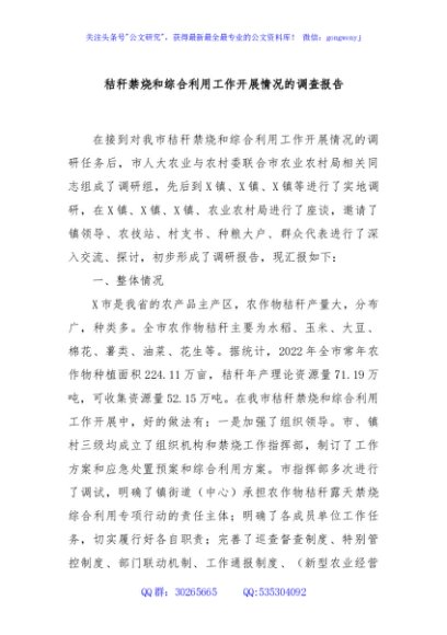 / 秸秆禁烧和综合利用工作开展情况的调查报告