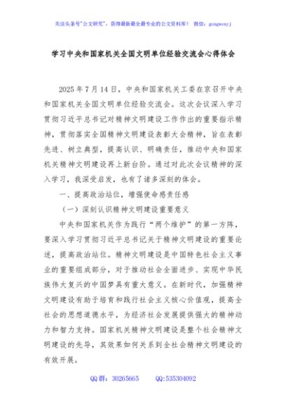 / 学习中央和国家机关全国文明单位经验交流会心得体会