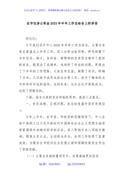 / 在市住房公积金2025年半年工作总结会上的讲话