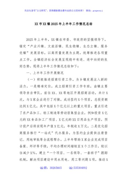 / XX市XX镇2025年上半年工作情况总结