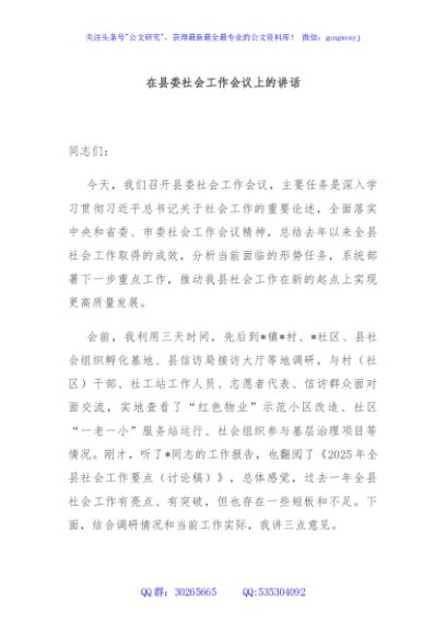/ 在县委社会工作会议上的讲话