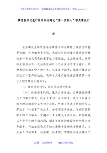 / 镇党委书记履行推进法治建设“第一责任人”职责情况汇报