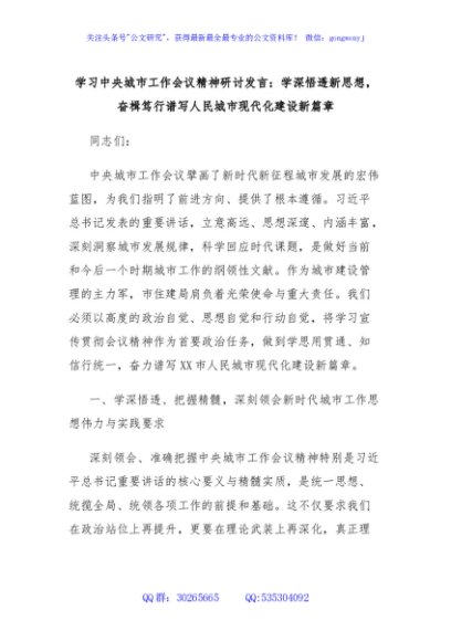 / 学习中央城市工作会议精神研讨发言:学深悟透新思想,奋楫笃行谱写人民城市现代化建设新篇章