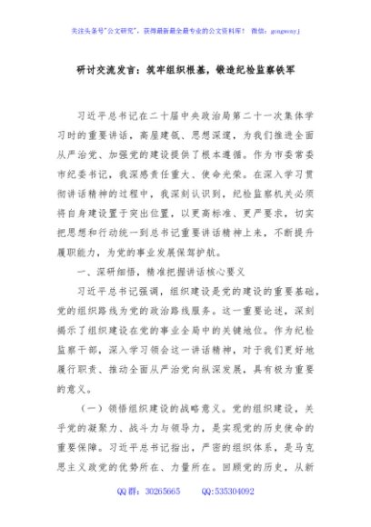 / 研讨交流发言:筑牢组织根基,锻造纪检监察铁军