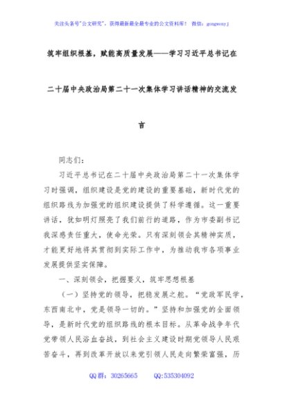 / 筑牢组织根基,赋能高质量发展——学习习近平总书记在二十届中央政治局第二十一次集体学习讲话精神的交流发言