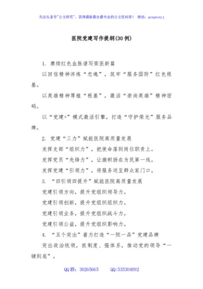 / (30例)医院党建写作提纲