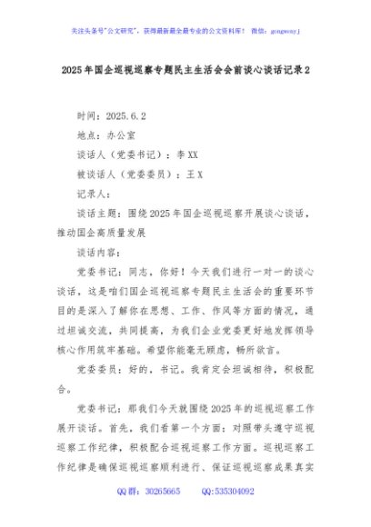 / 2025年国企巡视巡察专题民主生活会会前谈心谈话记录2
