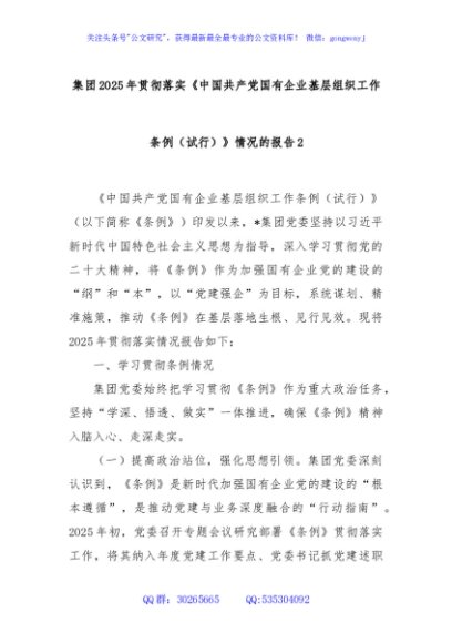 / 集团2025年贯彻落实《中国共产党国有企业基层组织工作条例(试行)》情况的报告2