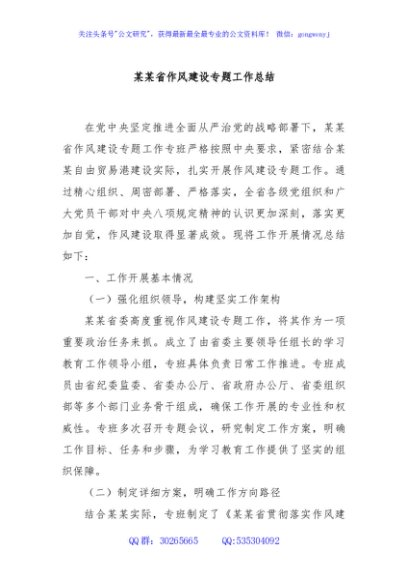 / 某某省作风建设专题工作总结