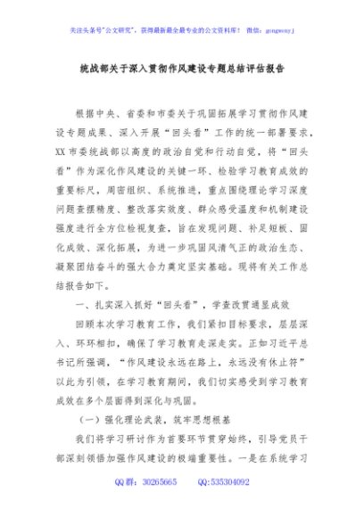 / 统战部关于深入贯彻作风建设专题总结评估报告