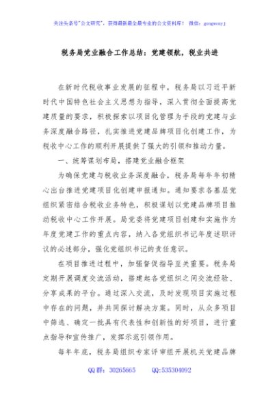 / 税务局党业融合工作总结:党建领航,税业共进