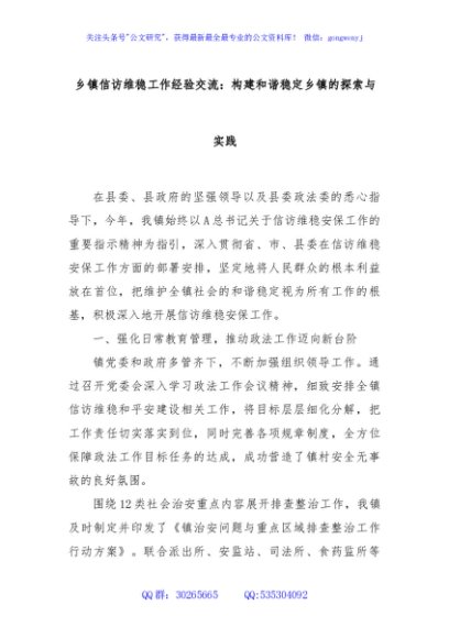/ 乡镇信访维稳工作经验交流:构建和谐稳定乡镇的探索与实践