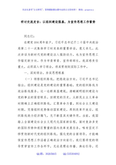 / 研讨交流发言:以组织建设强基,为宣传思想工作蓄势