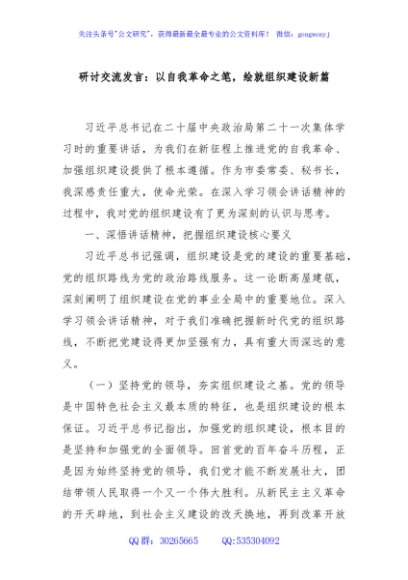 / 研讨交流发言:以自我革命之笔,绘就组织建设新篇