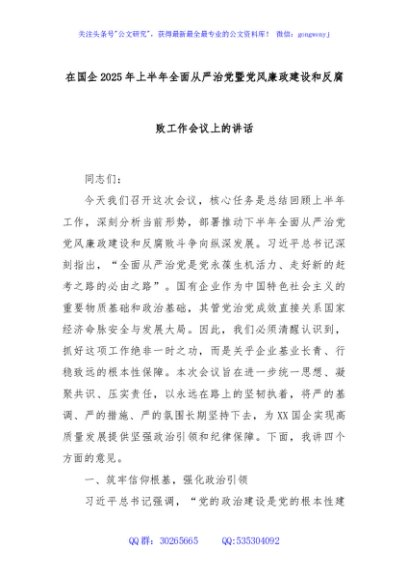 / 在国企2025年上半年全面从严治党暨党风廉政建设和反腐败工作会议上的讲话