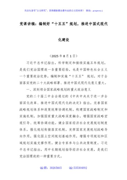 / 党课讲稿+PPT:编制好“十五五”规划 推进中国式现代化建设