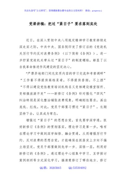 / 党课讲稿+PPT课件:把过“紧日子”要求落到实处