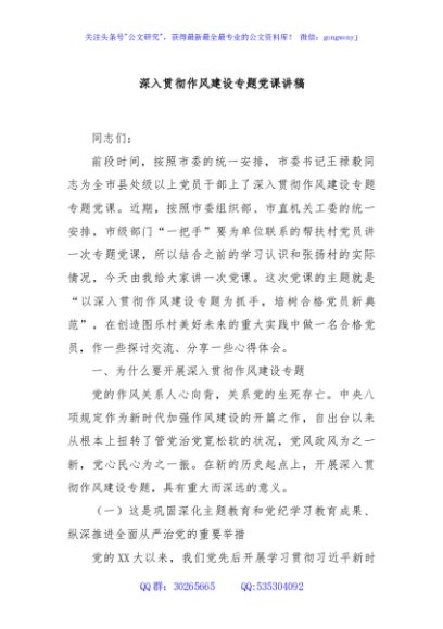 / 深入贯彻作风建设专题党课讲稿